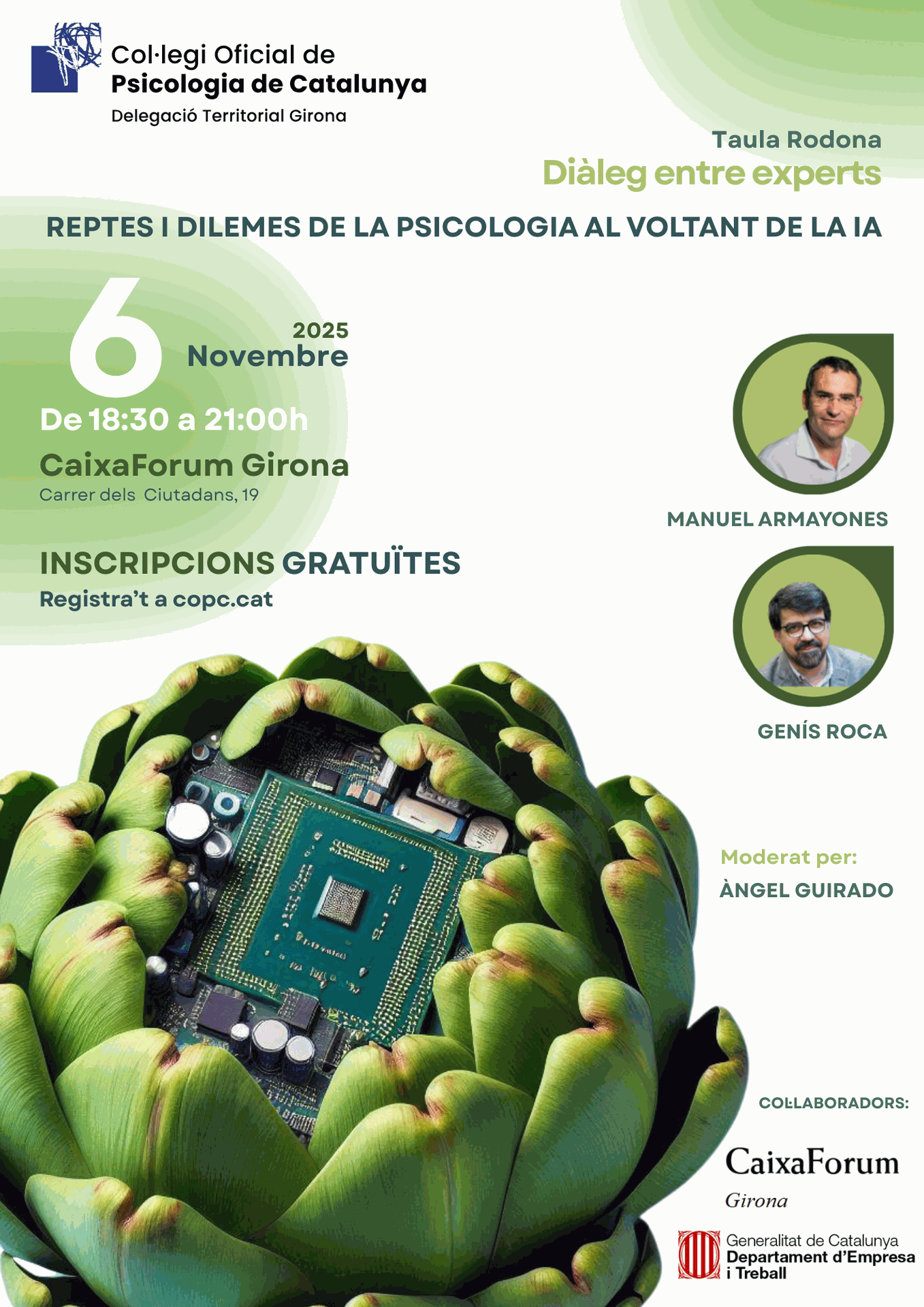 En aquesta nova jornada posarem el focus en un fenomen decisiu per comprendre el nostre temps: la intel·ligència artificial i les seves implicacions en la pràctica i el coneixement psicològic. Aquesta segona jornada comptarà amb la participació de Manel Armayones i de Genís Roca, els quals ens oferiran la seva visió sobre els reptes, oportunitats i límits que la IA planteja per a la psicologia i per a la nostra manera d'entendre l’ésser humà en l'era digital.