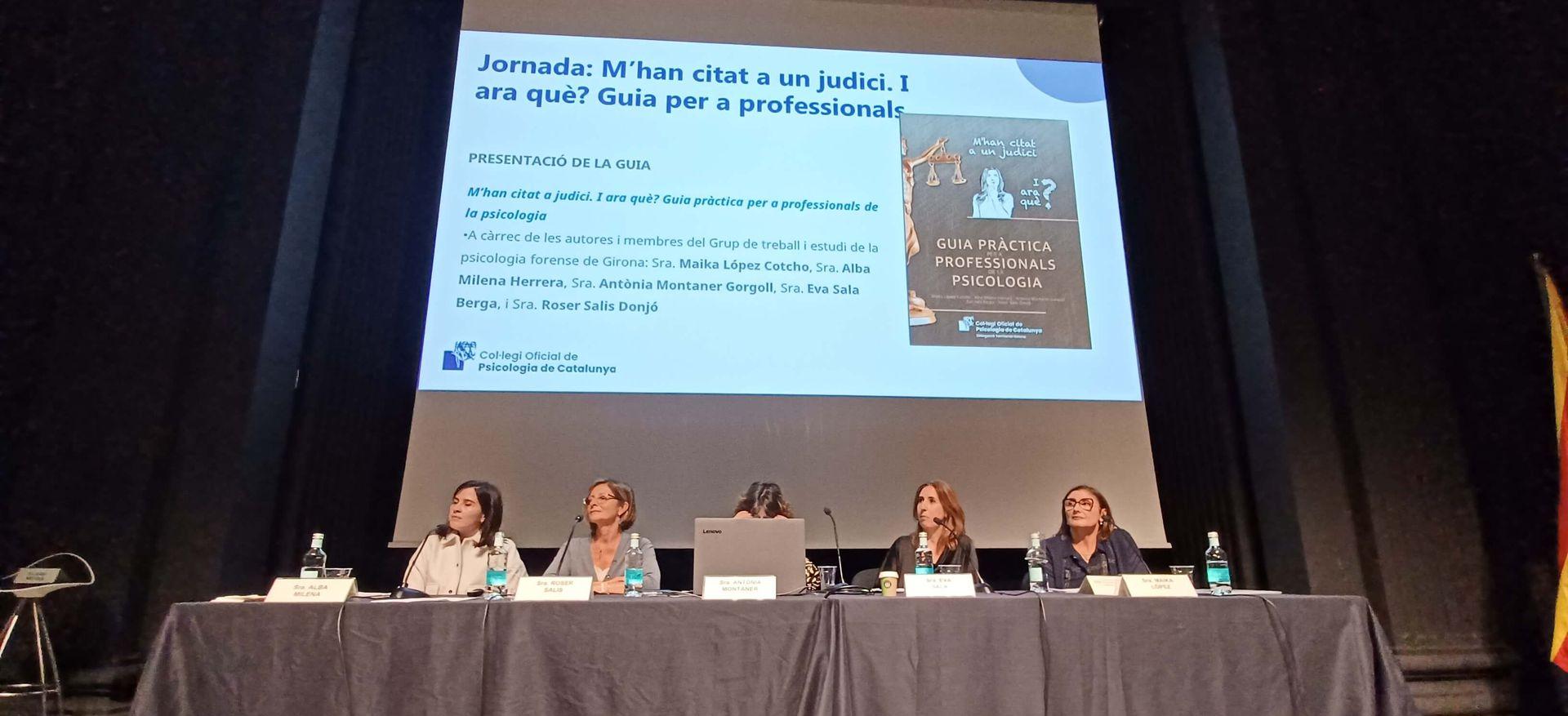 Les autores de la guia —Roser Salis, Eva Sala, Alba Milena, Maika López i Antònia Montaner— són psicòlogues acreditades pel COPC com a expertes en psicologia forense. El document recull informació pràctica i exemples que ajuden a comprendre els procediments judicials i a afrontar amb seguretat situacions com la declaració en sala o la intervenció com a perit.
