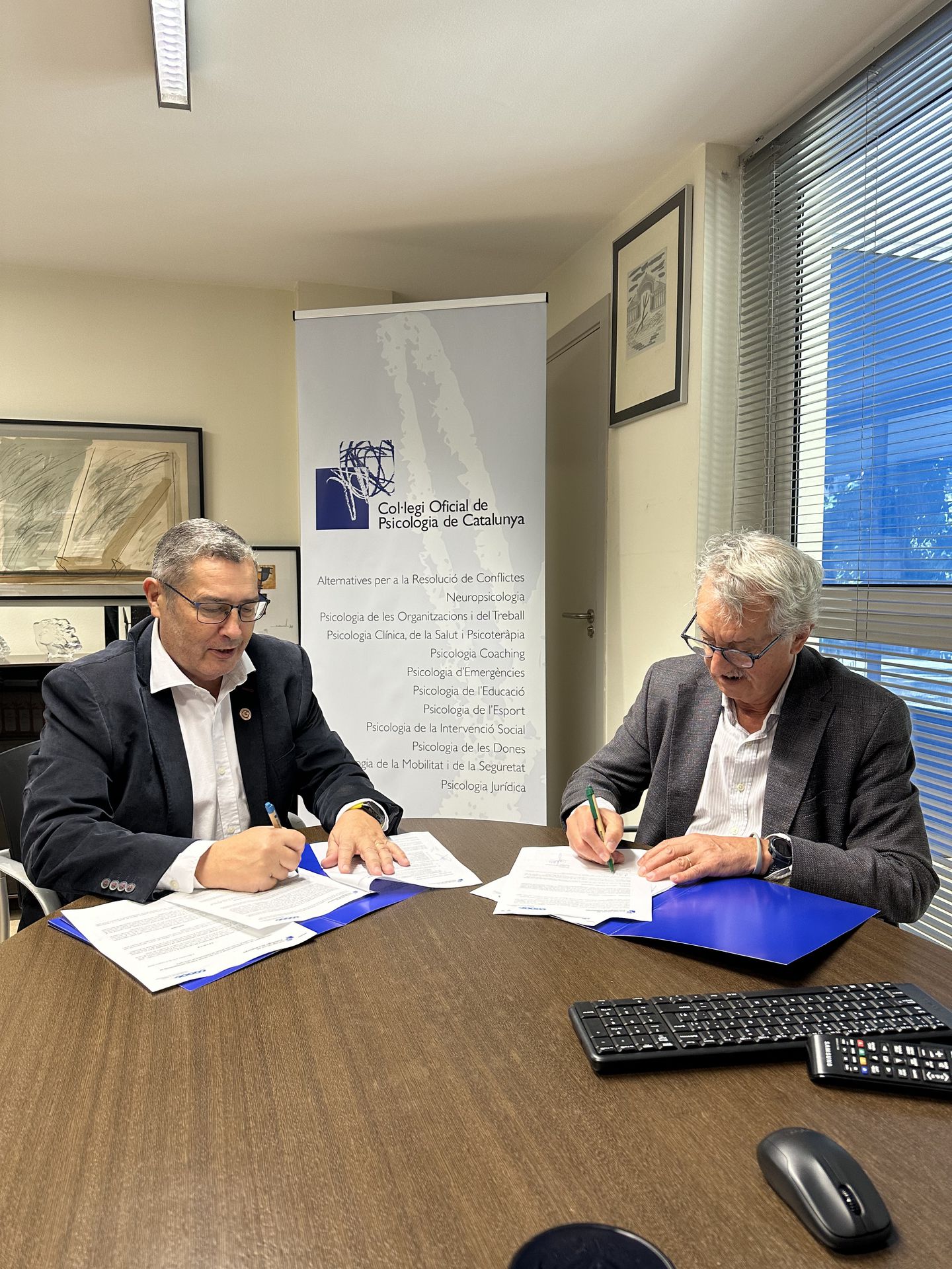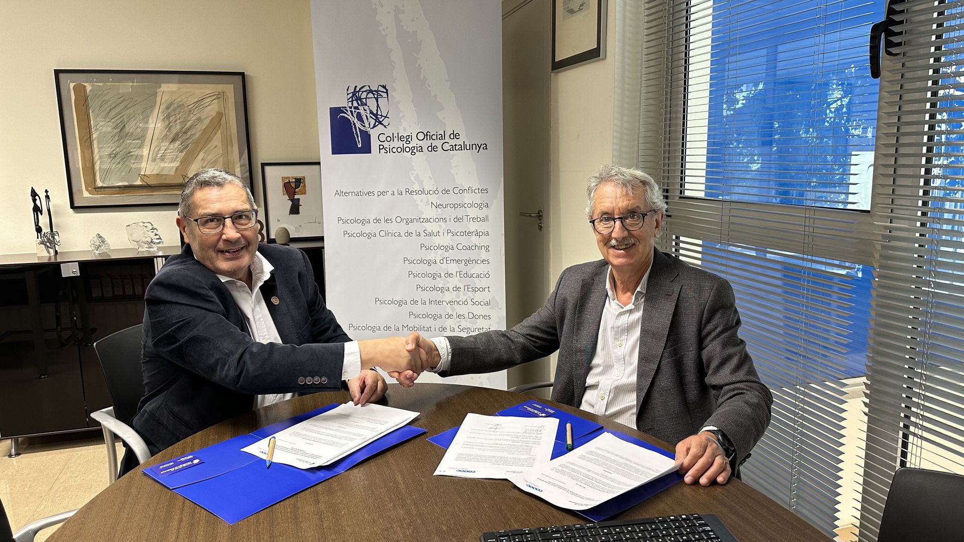 Dimecres 12 de novembre Guillermo Mattioli, degà del Col·legi Oficial de Psicologia de Catalunya, i Joaquim Grau, president del Col·legi Oficial d'Òptics Optometristes de Catalunya, es van reunir a la seu del COPC per signar el conveni.