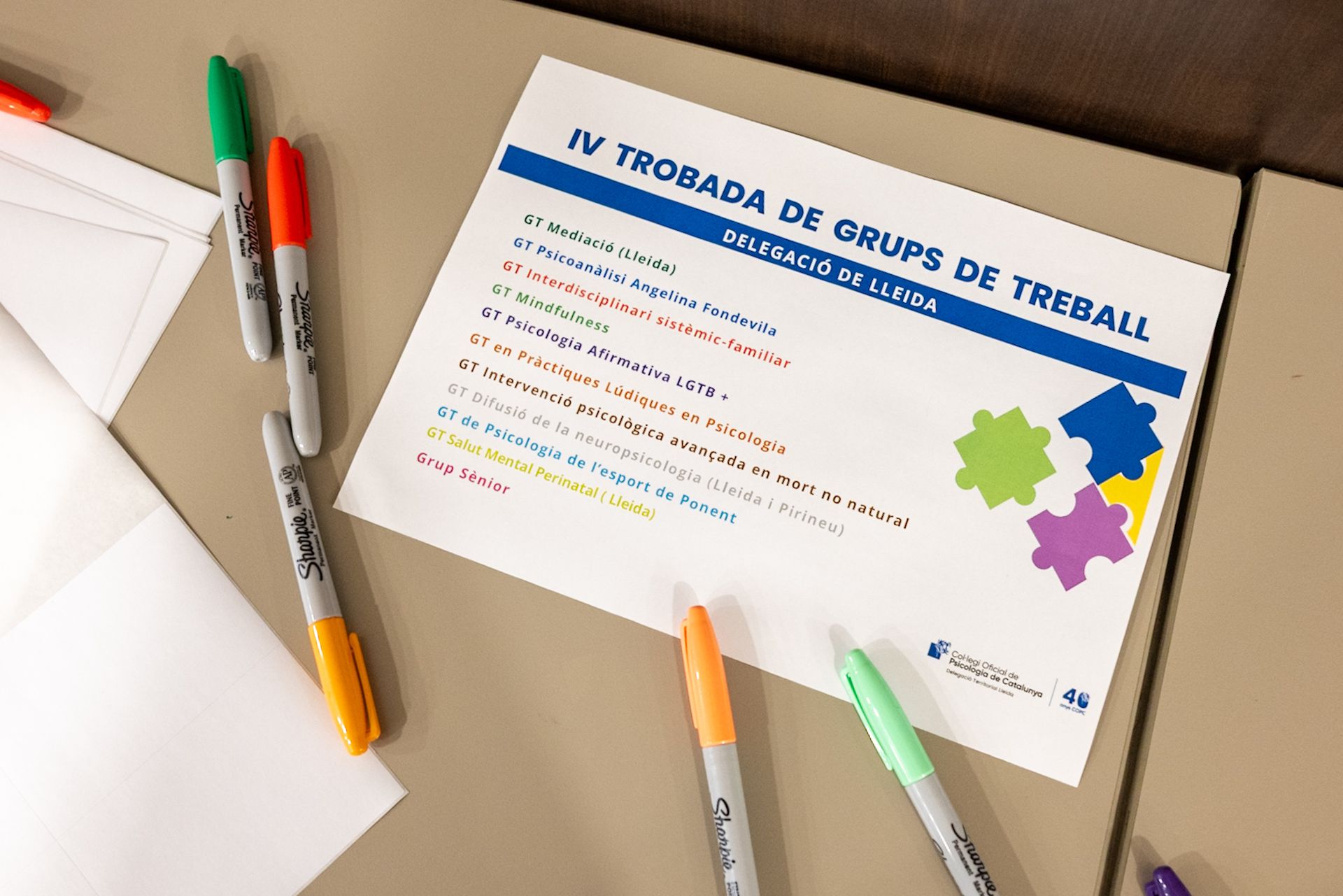 El passat divendres 20 de març, l’Hotel NH Lleida Pirineus va acollir la quarta edició de la Trobada de grups de treball de la Delegació Territorial de Lleida del Col·legi. Aquesta iniciativa, ja plenament consolidada, té com a finalitat enfortir els vincles entre les psicòlogues i psicòlegs del territori i fomentar l’intercanvi d’experiències, projectes i reptes compartits.