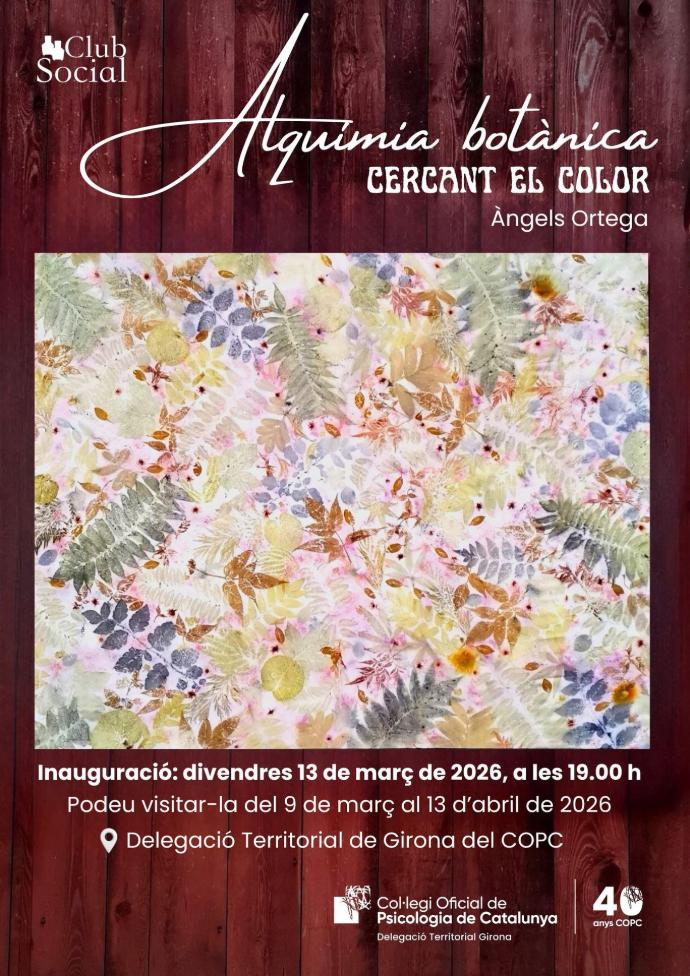 El Club Social us convida a visitar la nova exposició de Maria Àngels Ortega, una proposta on, a través de l’alquímia botànica, l’autora explora la connexió entre natura, llum i color, transformant el temps i la matèria en empremtes de memòria.