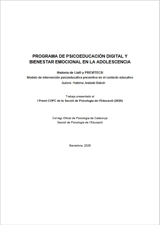 Los trabajos deben enviarse en formato word o PDF a las direcciones [email protected] i [email protected].El jurado estará formado por miembros de la Junta de la Sección de Psicología de la Educación: Olga Piazuelo Ferrer, Carmen Civit Ruiz y Flavio Castiglione Méndez. El fallo se hará público antes del 31 de enero de 2026.