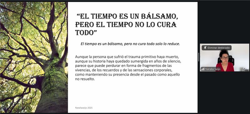 El contenido incluyó conceptos clave como la regulación emocional, la psicosomática, la disociación y la internalización de mensajes familiares, poniendo el foco en la forma en que estos factores interactúan en el presente terapéutico. Además, el taller ofreció herramientas prácticas para profesionales como recursos para la evaluación, estrategias para explorar el historial personal y familiar y propuestas de intervención orientadas a la reparación emocional.