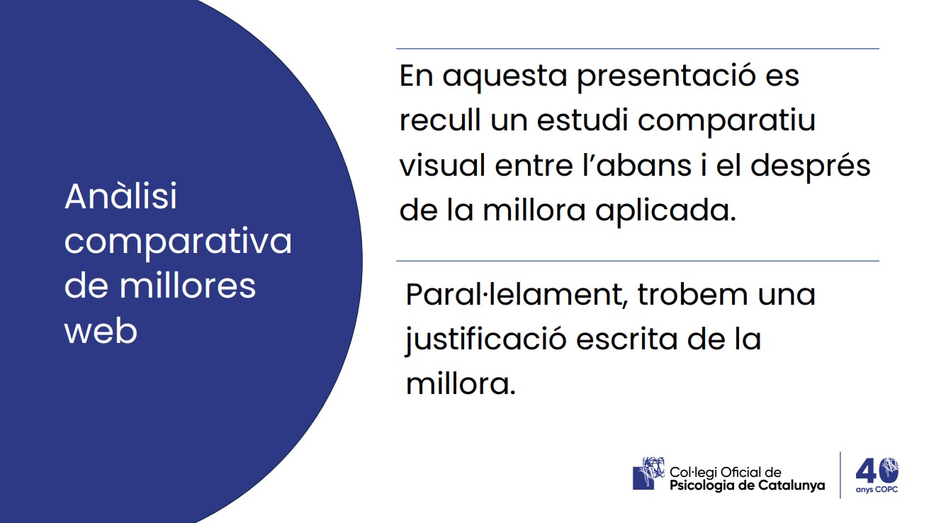 Este conjunto de mejoras, que se pondrán en funcionamiento a lo largo de la próxima semana, se implementan con la voluntad de adaptar la web a las necesidades de todas las personas colegiadas y usuarias. El objetivo es ofrecer una experiencia más clara, accesible y personalizada, garantizando que cada persona colegiada pueda encontrar con facilidad la información y las actividades que le interesen.