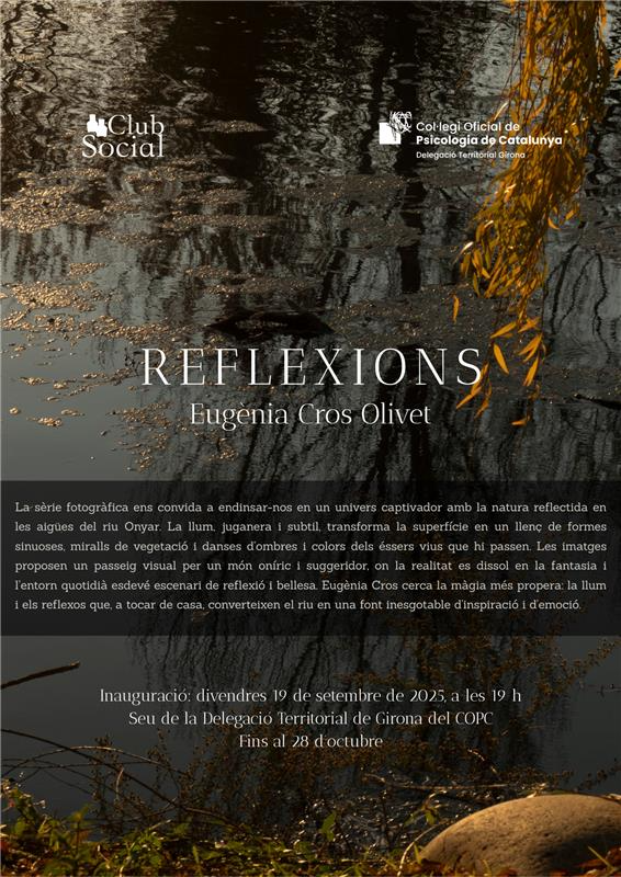 La serie fotográfica de Eugenia Cros nos invita a contemplar la magia de la naturaleza reflejada en el río Onyar, donde la luz transforma el agua en un espacio de formas y colores sugerentes. Sus imágenes crean un universo poético y cercano, en el que el paisaje cotidiano se convierte en una fuente de inspiración, emoción y belleza.