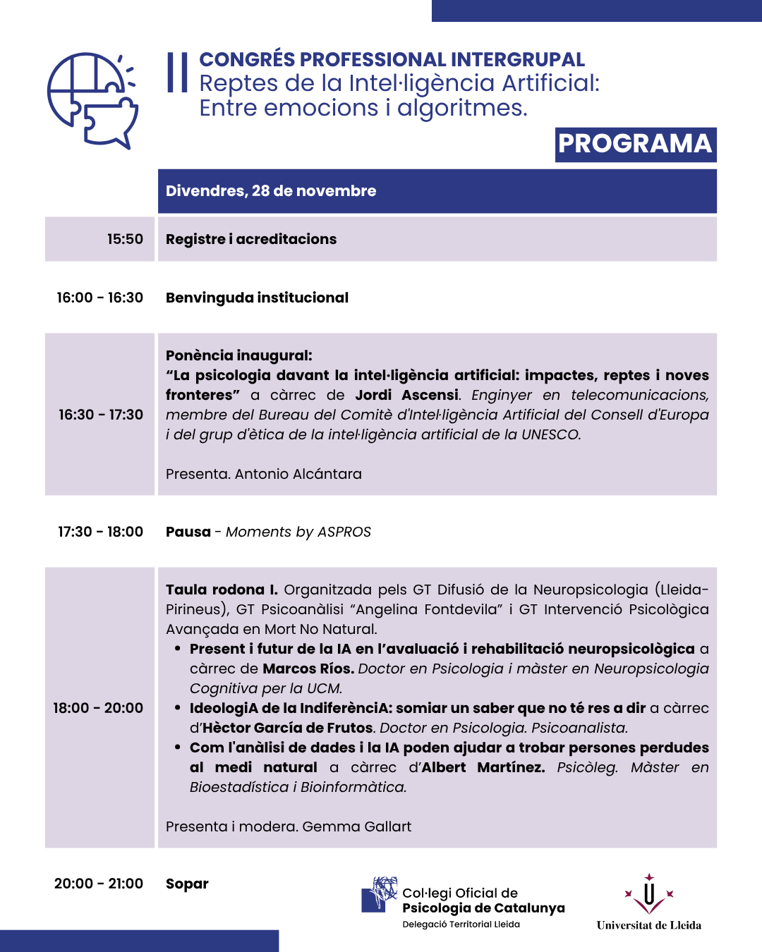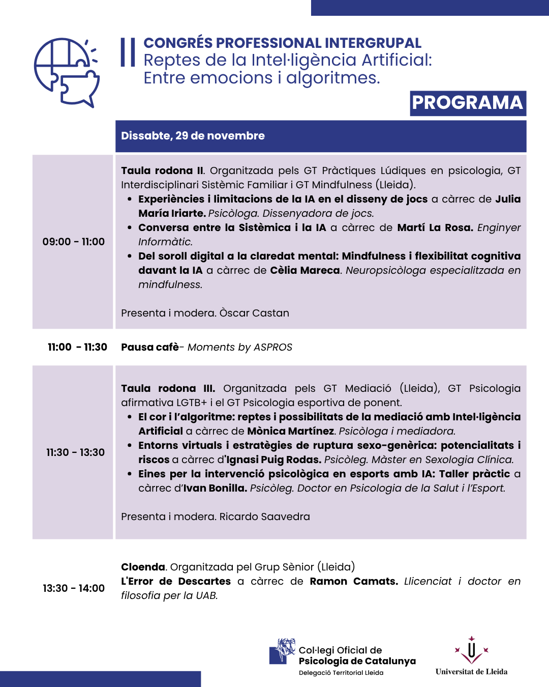 II Congrés Professional Intergrupal: Reptes de la Intel·ligència Artificial: entre emocions i algorítmes.