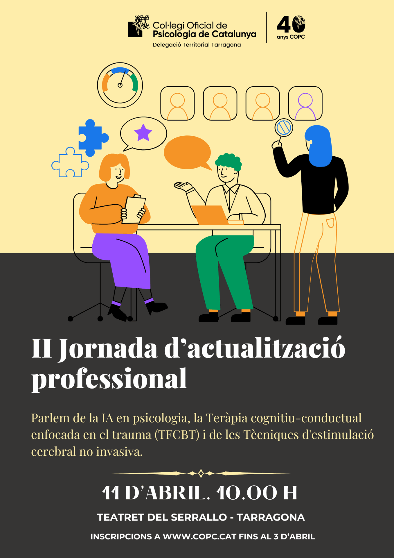 II Jornada d’Actualització Professional. Parlem de la IA en psicologia, la Teràpia cognitiu-conductual enfocada en el trauma (TFCBT) i de les Tècniques d'estimulació cerebral no invasiva.